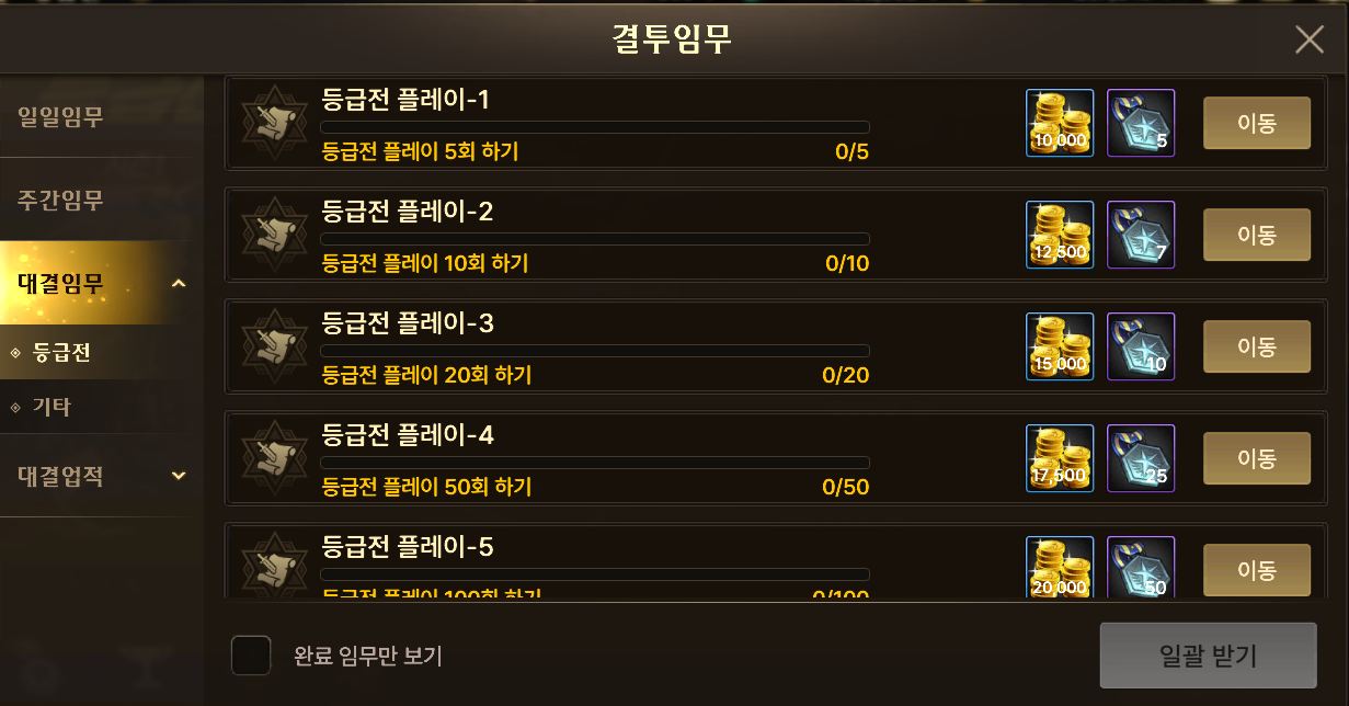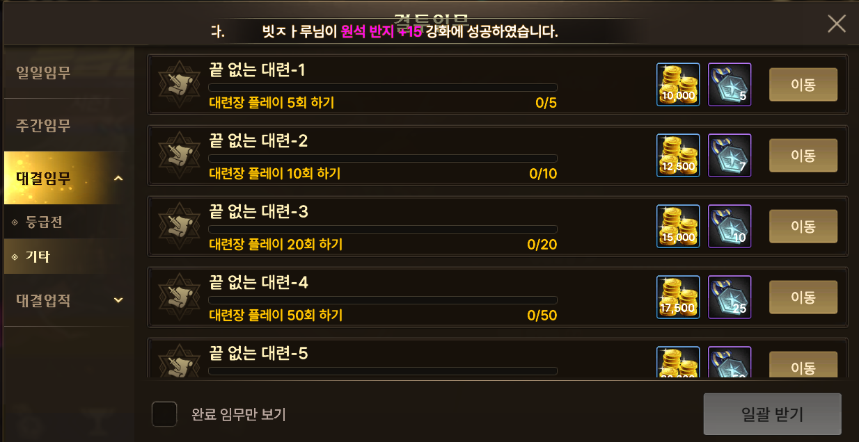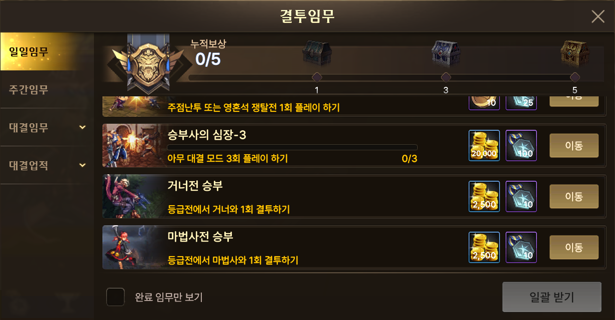 | 결투 임무 - 일일 임무 | 25,000골드 |