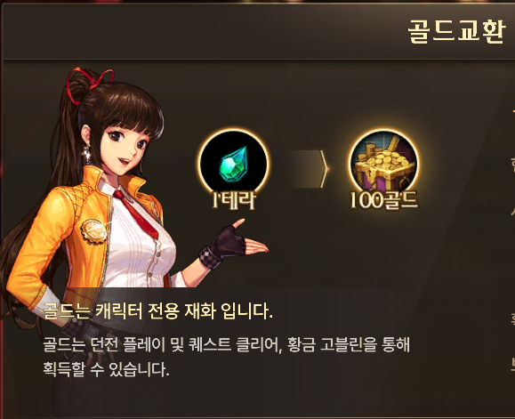 1. 테라를 골드로 변환(1테라당 100골드로 변환)