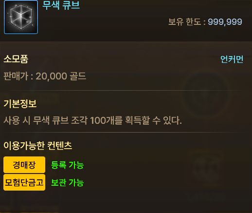 2. 무색 큐브로 제작하여 판매(20,000골드)